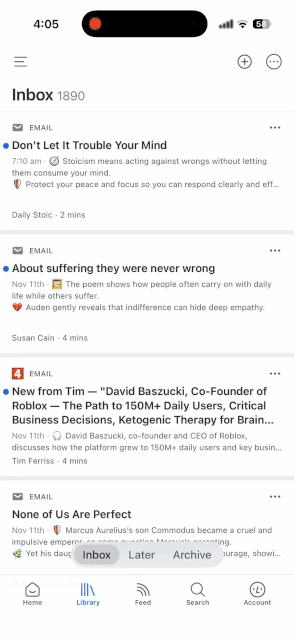 Discover your own personalized stream of wisdom at readwise.io/feed. On desktop, you can scroll endlessly through your highlights, thoughts, and ideas. It’s like a social feed, but it’s curated by you for reflection instead of distraction.