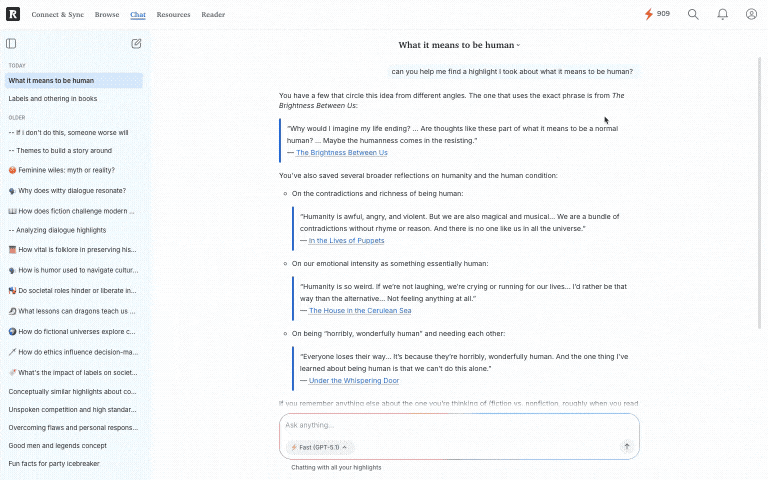 Chats piling up? We’ve added new documentation on renaming and deleting chat threads, so you can label what matters and let go of what doesn’t. And, while you’re checking out the updates, brush up on all the ways Readwise’s chat feature can help you find and synthesize your highlights!