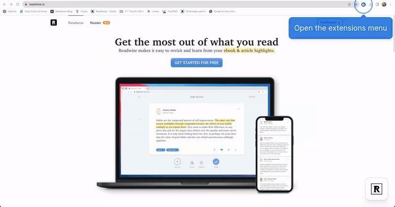 Pin the extension to your browser so it’s always easy to find. To pin the extension, click the puzzle piece icon in your browser toolbar. Find the Reader extension in the list, then click the pin icon next to it. Once pinned, the extension button will always be visible in your toolbar.