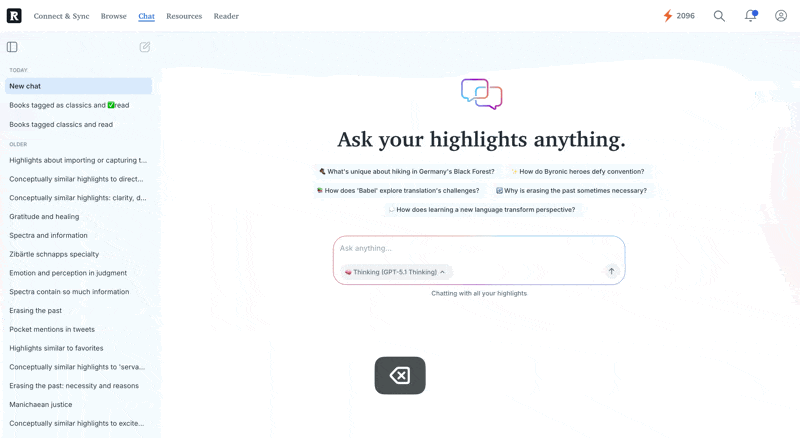 You are able to search across multiple tags at the same time, which helps you see related highlights in one place. Using Chat with Highlights, you can type in what you are looking for, including more than one tag, and it gathers the matching highlights for you. It is a handy way to look across different topics without clicking around from tag to tag. Hereβs a guide from our help docs that walks through it: Chat With Your Readwise Highlights